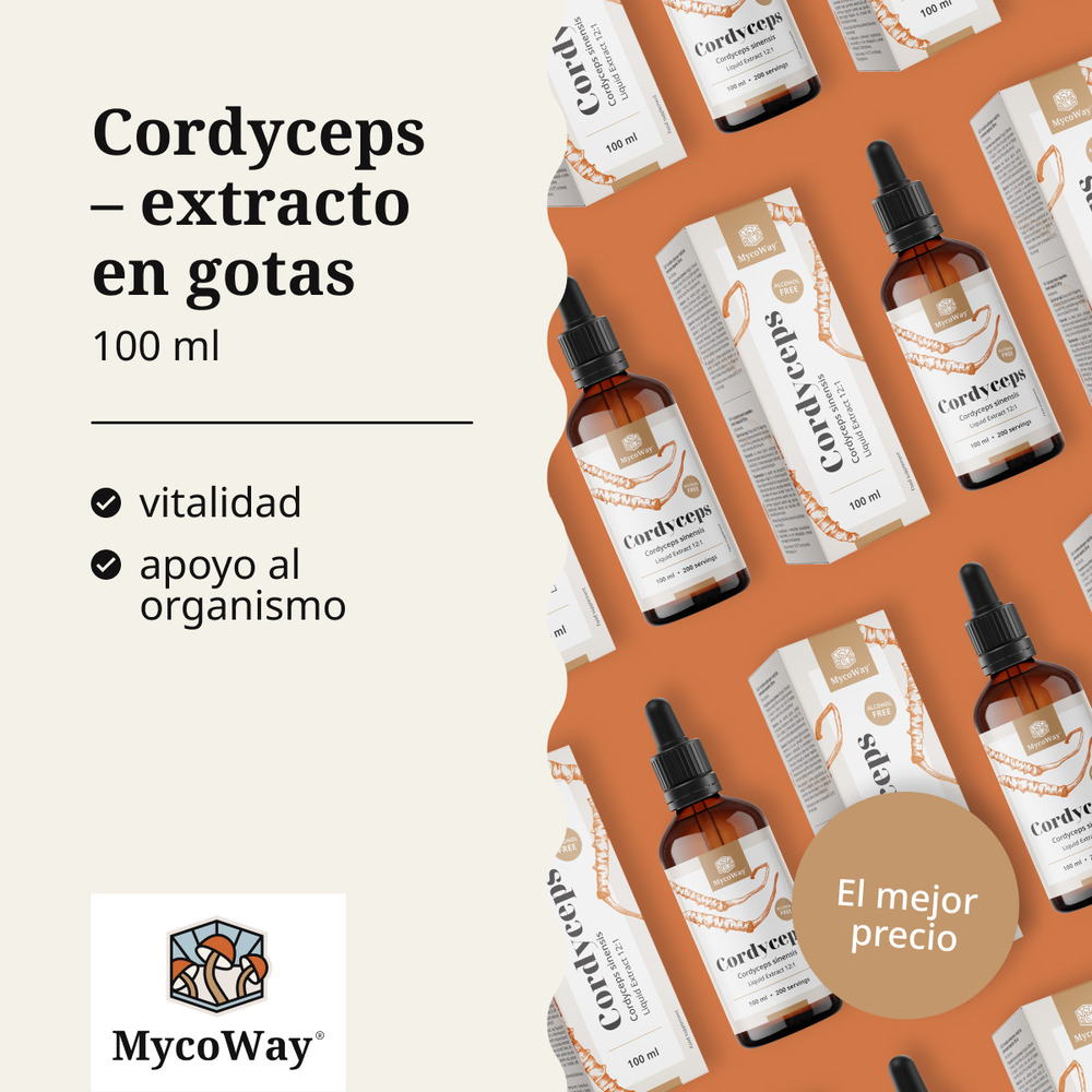 Las gotas con extracto de cordyceps son tan eficaces como convenientes, lo que permite una fácil incorporación a la rutina diaria. Con solo 10 gotas al día, obtendrá 120 mg de extracto, lo que garantiza una alta concentración de principios activos en una forma conveniente.