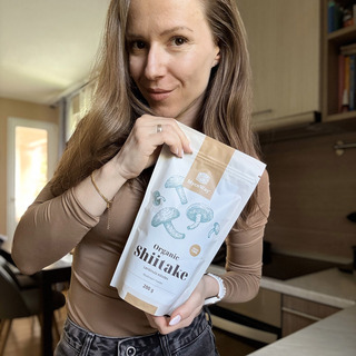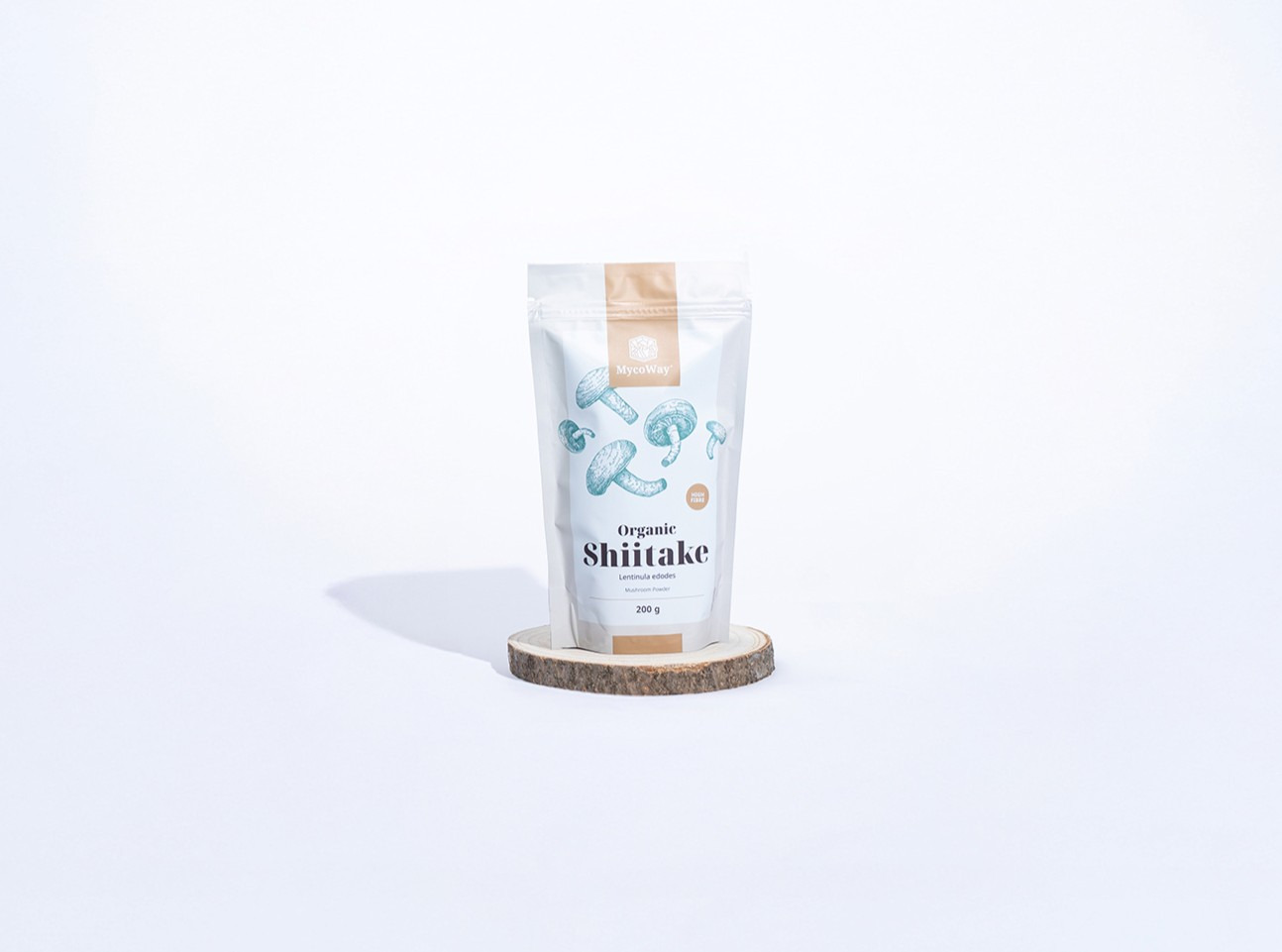 El shiitake en polvo es una forma extremadamente fácil y conveniente de proporcionar a nuestro cuerpo todos los beneficios de esta "seta milagrosa". El BIO shiitake en polvo contiene solo las esporas del hongo, sin micelio, y es extremadamente versátil: se puede agregar fácilmente a diferentes platos o mezclarlo en agua, té, café, cacao, yogur, jugo o batido.